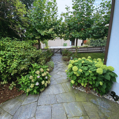 Wir bieten Ihnen eine umfassende Terrassengestaltung, die Ihren grünen Rückzugsort in eine blühende Oase verwandelt